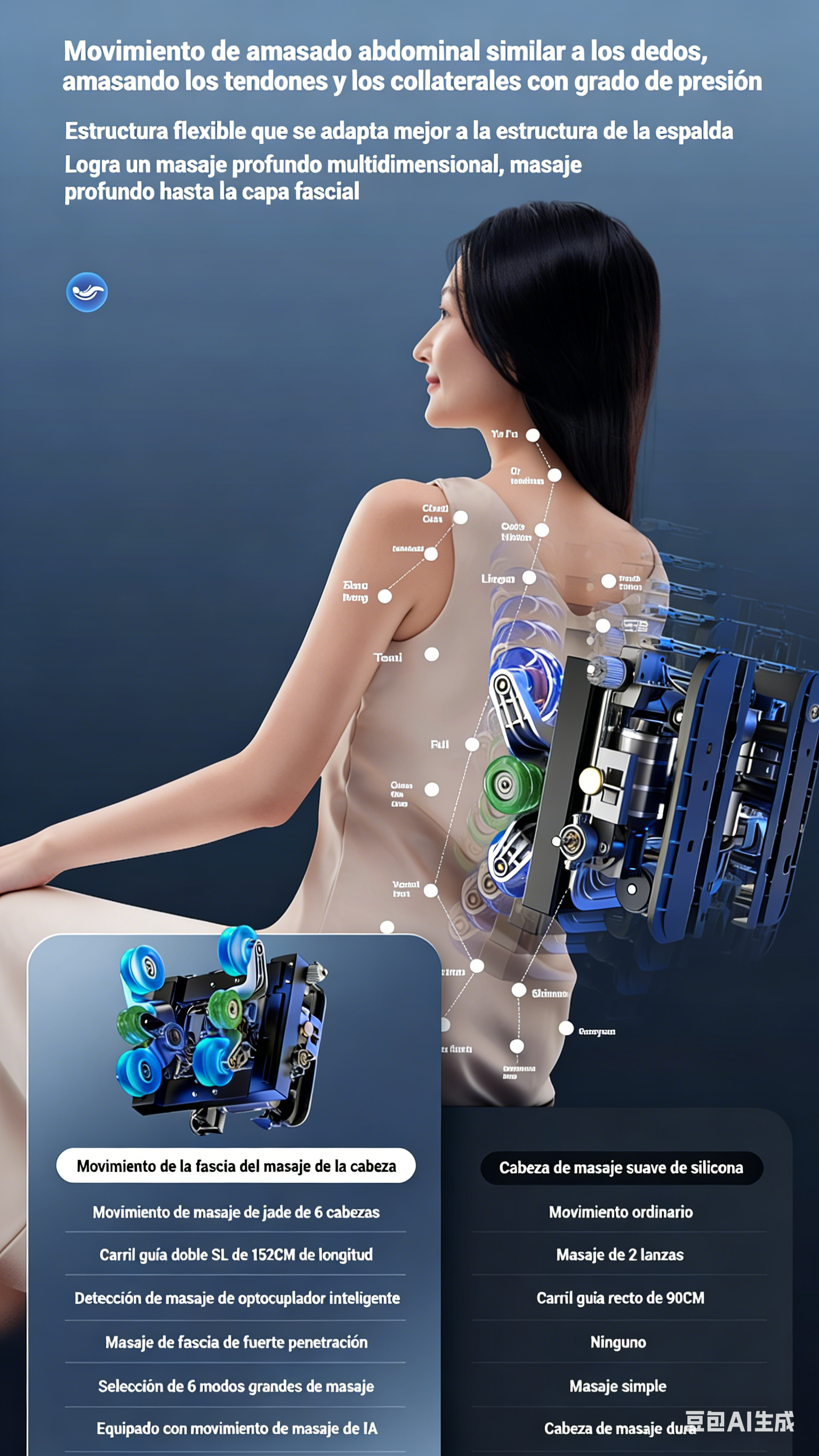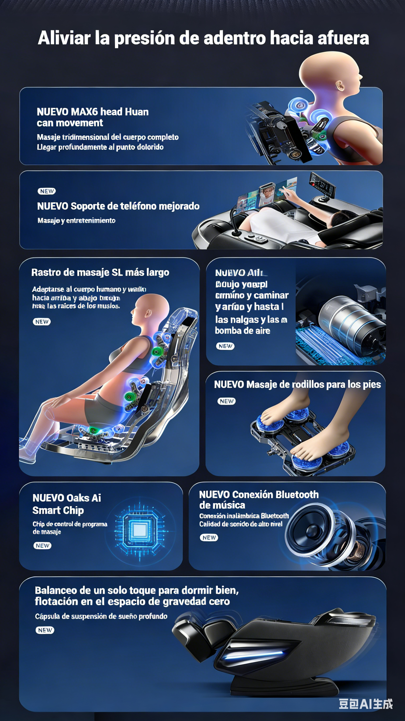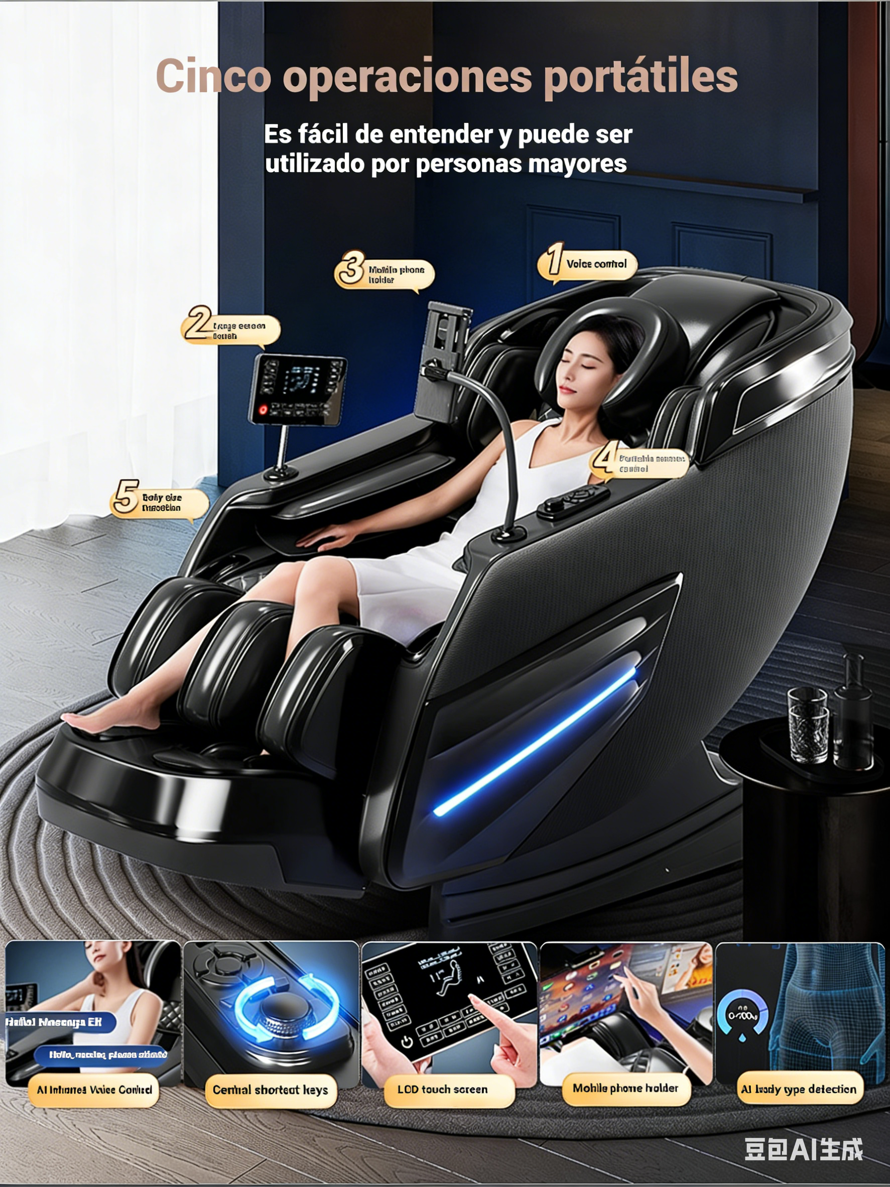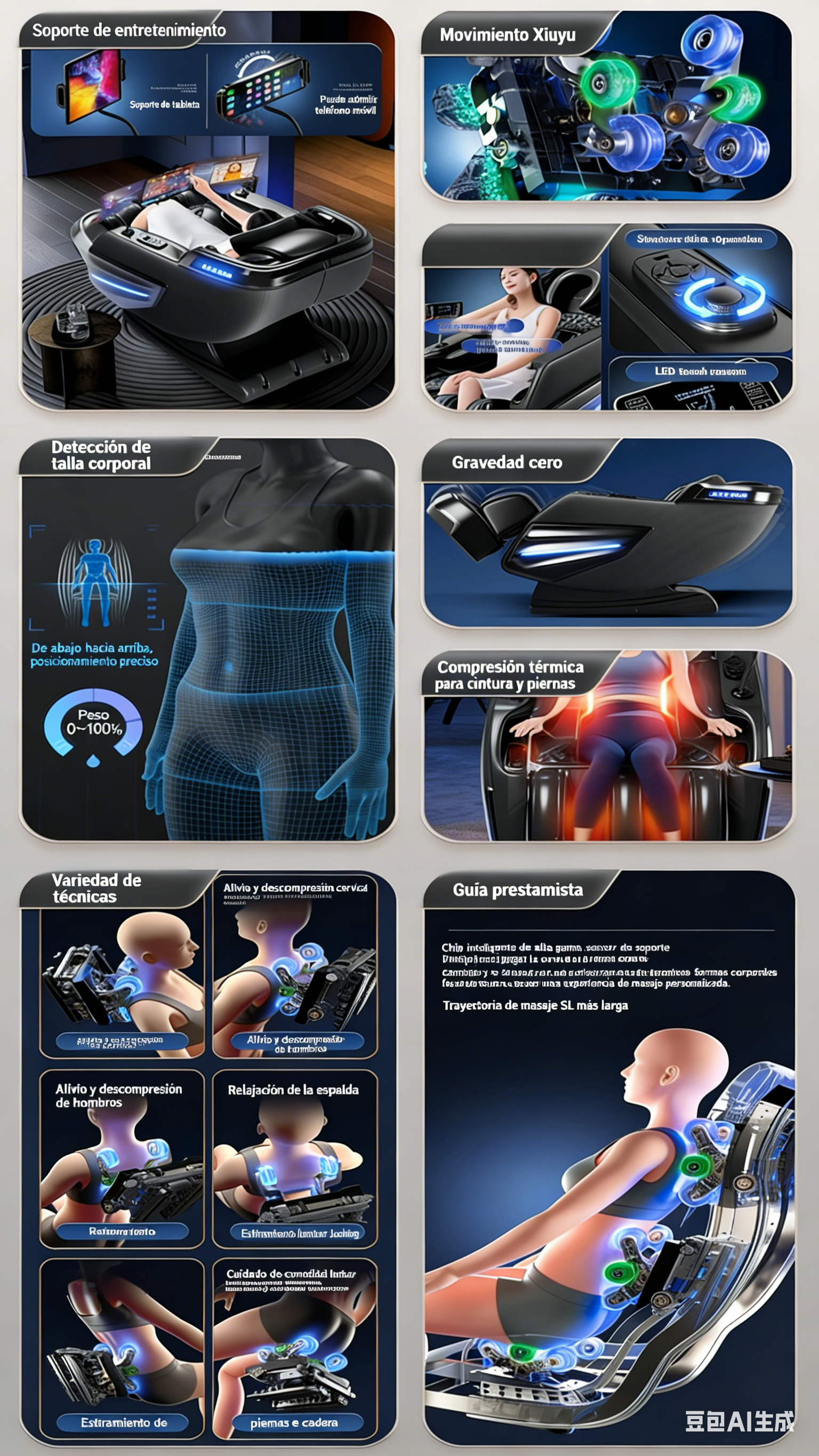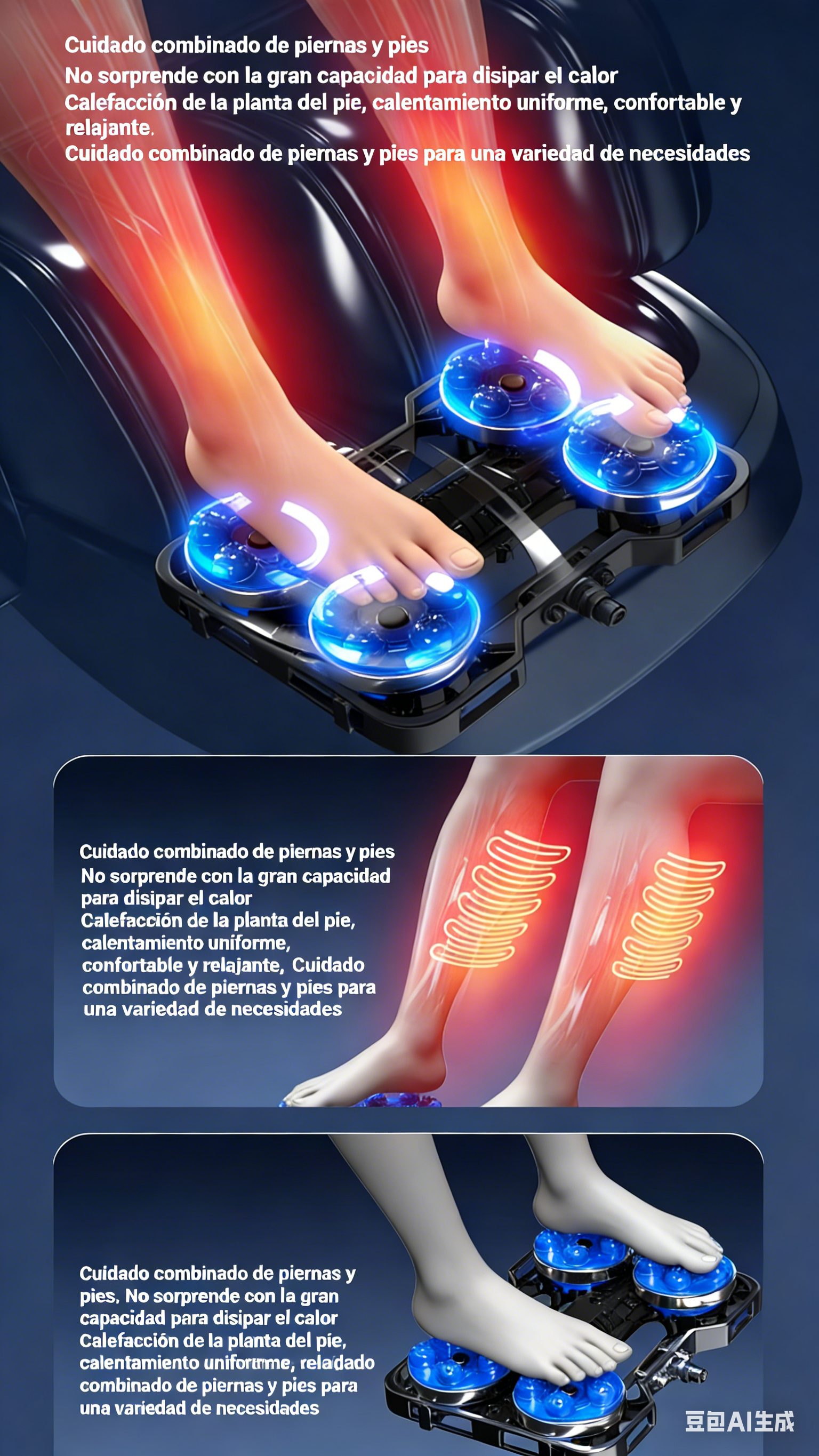 8. Reposapiés de plástico; Calefacción de pantorrillas; Amasamiento de planta