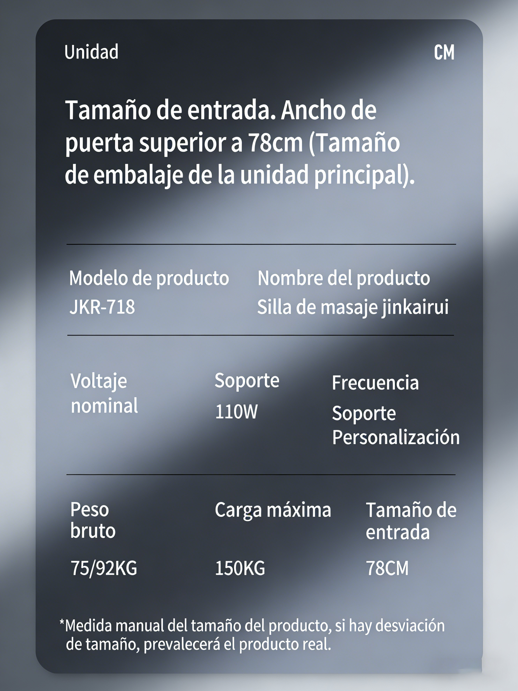 Peso neto/Peso bruto/Ancho: 85 kg-118 kg.