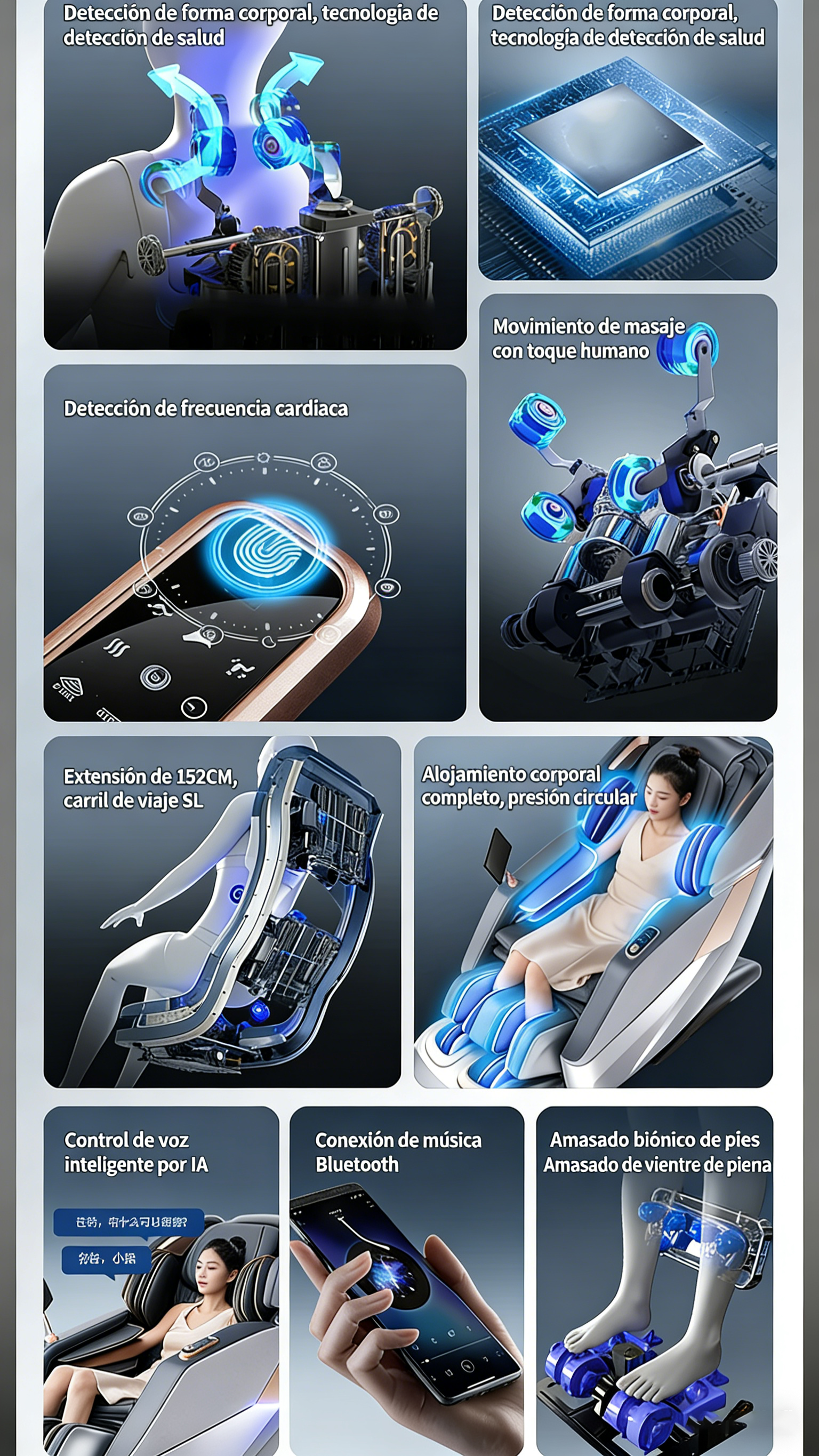 7. Reposapiés de plástico; Calefacción de pantorrillas; Amasamiento de plantilla;